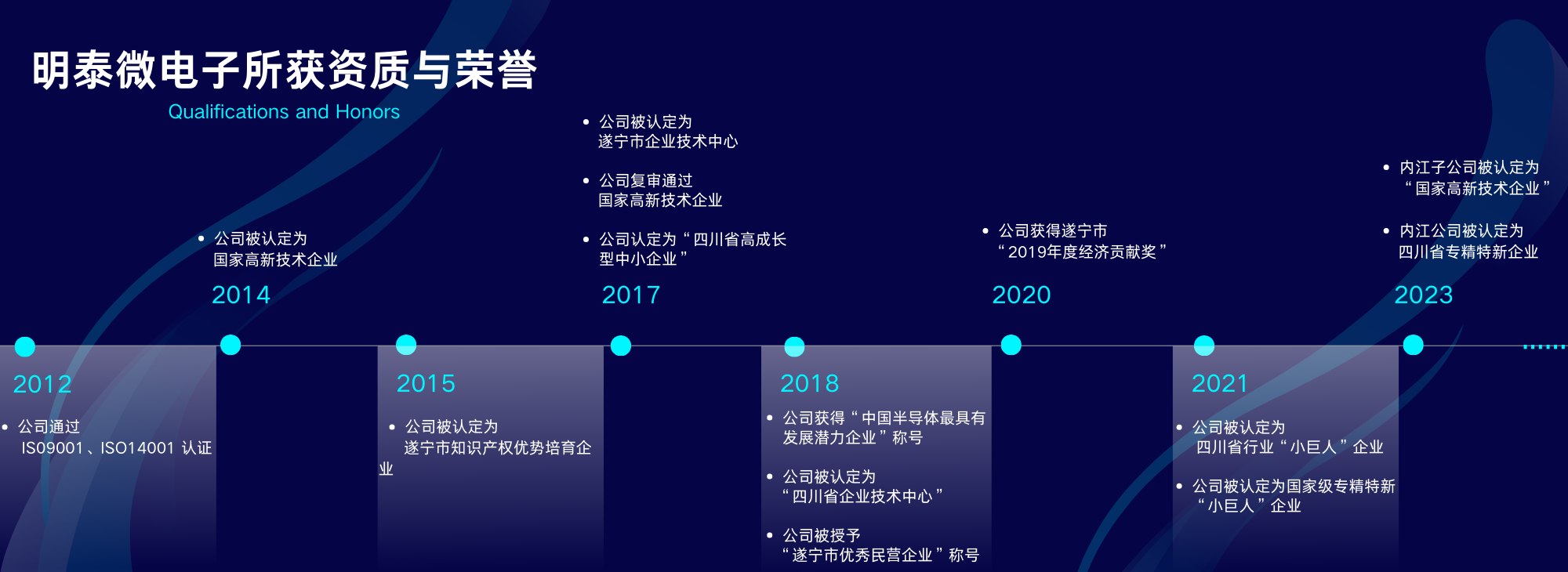 四川明泰電子科技有限公司獲得的資質(zhì)和榮譽(yù) ?2012年,公司通過ISO9001和ISO14001認(rèn)證; 2014年,公司認(rèn)定為“國家高新技術(shù)企業(yè)”; 2015年,公司認(rèn)定為“遂寧市知識(shí)產(chǎn)權(quán)優(yōu)勢培育企業(yè)”;